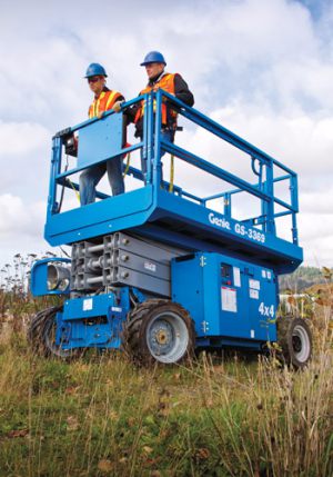 Podnośniki koszowe nożycowe z napędem diesla 4x4 i wysuwanym podestem